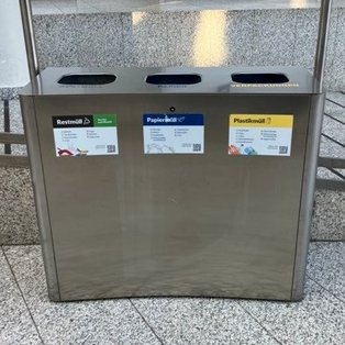 That's why we want to draw attention to our simple and uniform waste separation system in the wood and main building - in the offices, study rooms and student kitchens - which is already being used well and will soon be transferred to other locations.