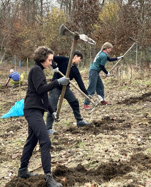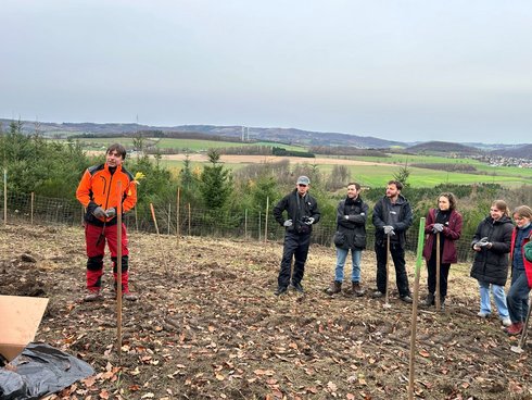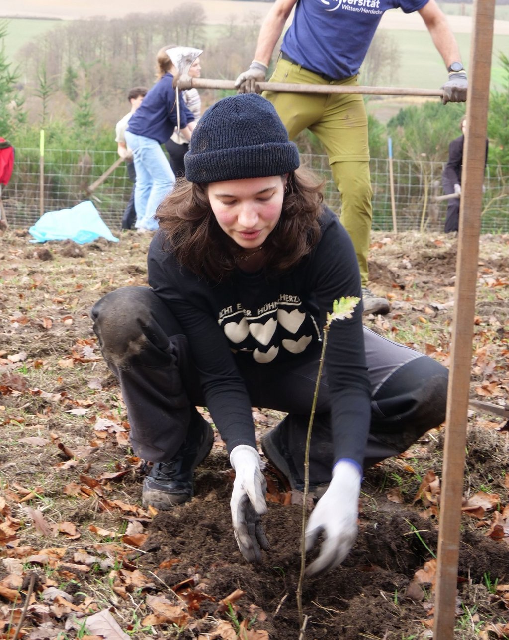 With sturdy shoes, hoes and a lot of motivation, around 20 UW/H members were active in the Neuenrad city forest last Friday: students, employees and trainees supported the Bergwaldprojekt - an association that works nationwide to protect, preserve and restore ecosystems - in planting heat-resistant oak trees. In doing so, they not only made a practical contribution to climate protection, but also strengthened the new cooperation between UW/H and the association.