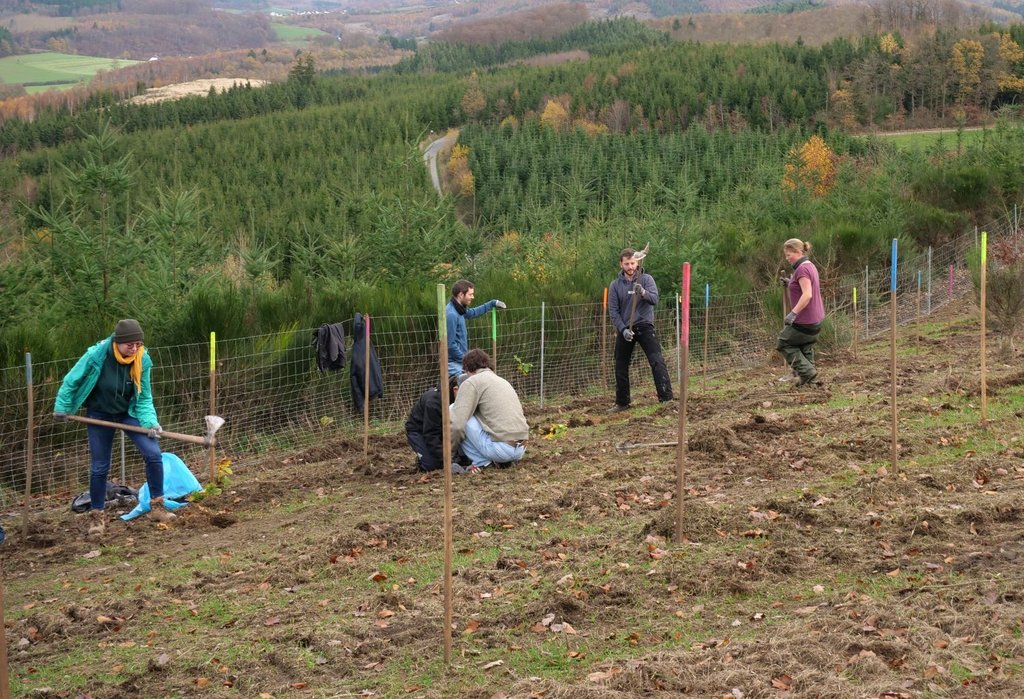 The participants planted the last 700 of a total of 2,000 young sessile oaks, which were planted by various groups of helpers over the course of the week. The oaks come from Croatia and cope well with periods of drought. In view of the decreasing rainfall and increasing forest damage in Germany, this species was deliberately selected as it can withstand future climatic conditions.