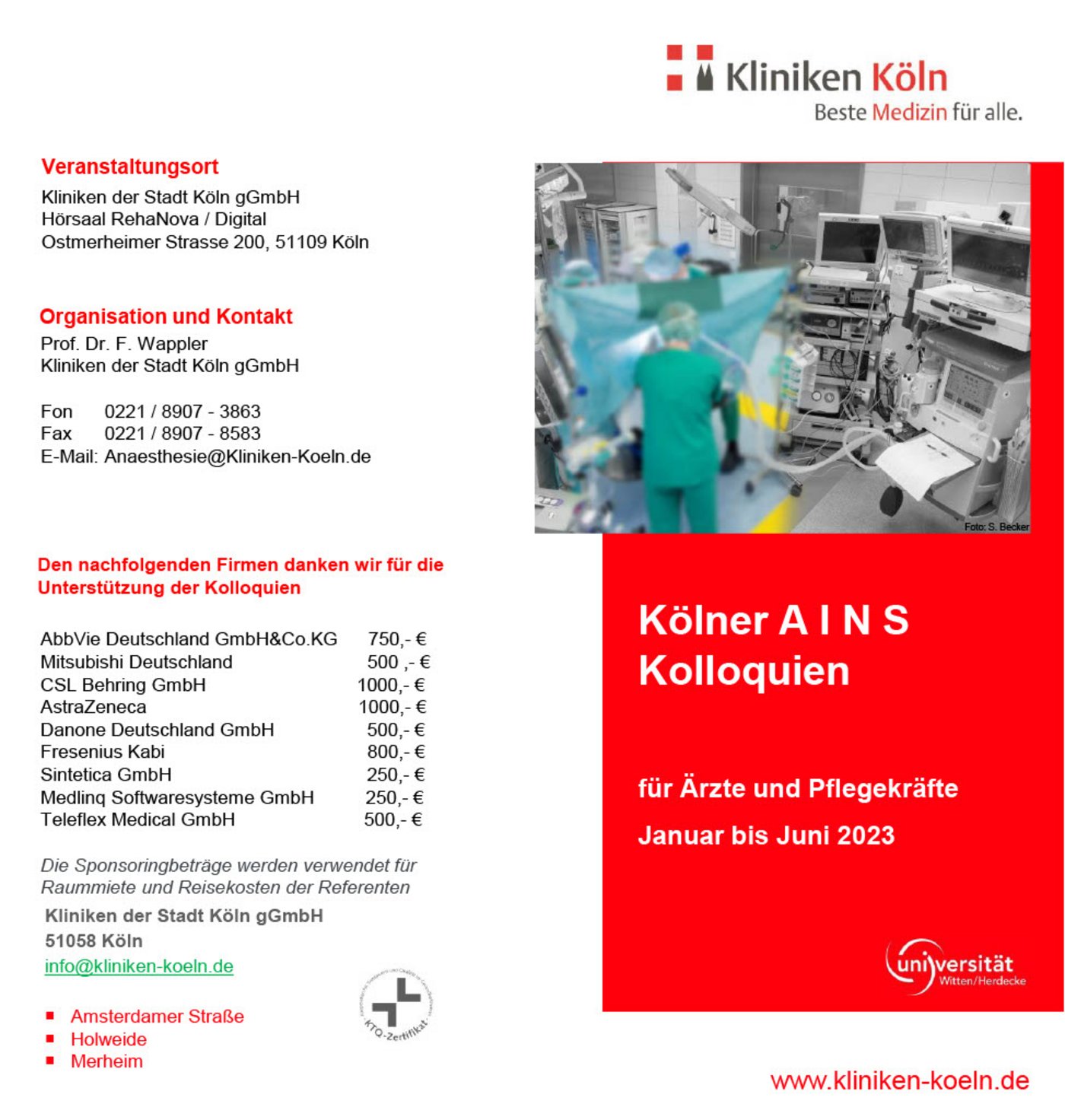 | Veranstalter | Klinik für Anästhesiologie und operative Intensivmedizin, Kliniken der Stadt Köln gGmbH, Krankenhaus Merheim |