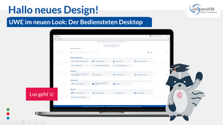 Studierende, Bewerbende und Anonyme nutzen bereits den neuen Desktop. Nun ändert sich die Oberfläche in UWE auch für alle Mitarbeitenden, die Funktionalitäten bleiben jedoch mit einer angepassten Benutzerführung bestehen und verändern sich nicht.