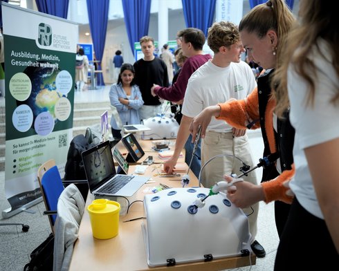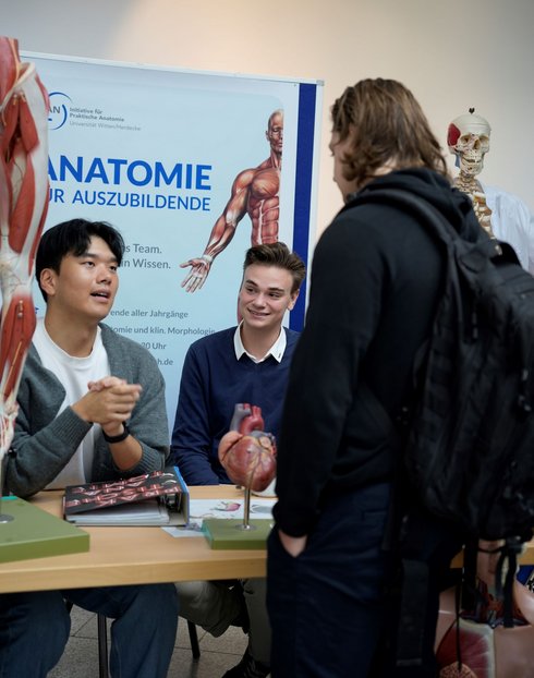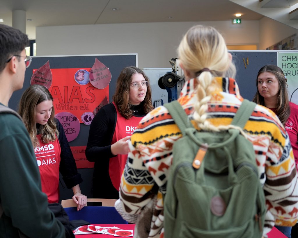 Am Stand des WittenLab. konnten sich die neuen Studierenden über das Studium fundamentale informieren und individuelle Fragen zu Veranstaltungen, Anmeldungen und Abläufen stellen.