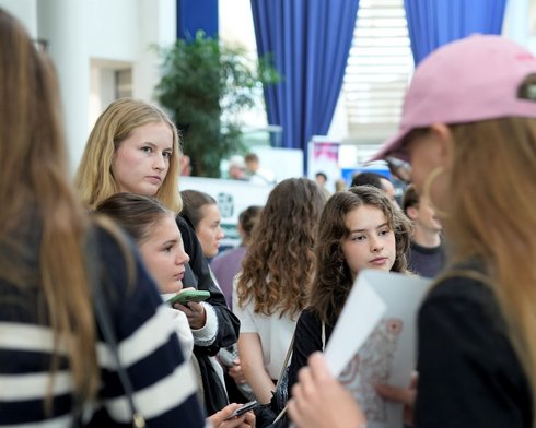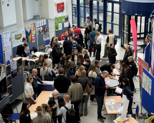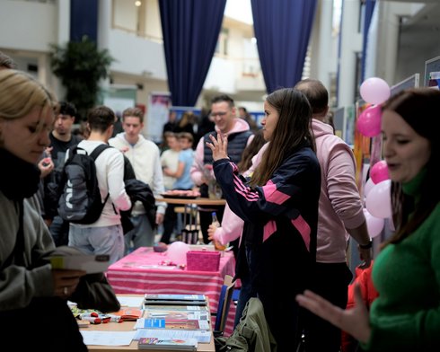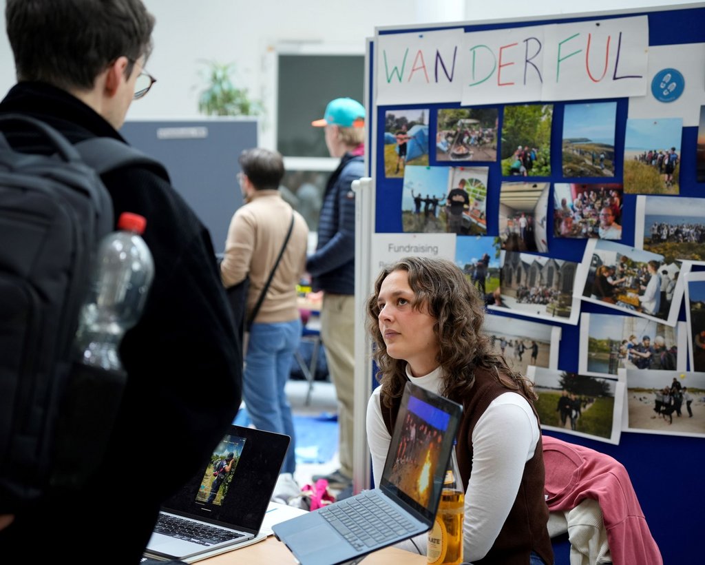Doch damit nicht genug: Ab 11 Uhr zeigten zahlreiche studentische Initiativen, wie lebendig und engagiert die UW/H ist. Ob regional oder international, sozial, ökologisch oder unternehmerisch – das Spektrum ist breit gefächert und recht von AIAS, einer Initiative im Kampf gegen Blutkrebs, über FUK, das studentische Team hinter dem Familienunternehmerkongress, bis zu Wanderful, ein sozialpädagogisches Wanderprojekt, das Schüler:innen und Studierende bei gemeinsamen Auslandswanderungen verbindet.