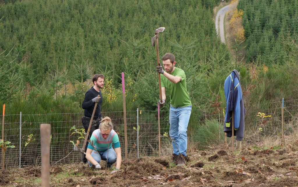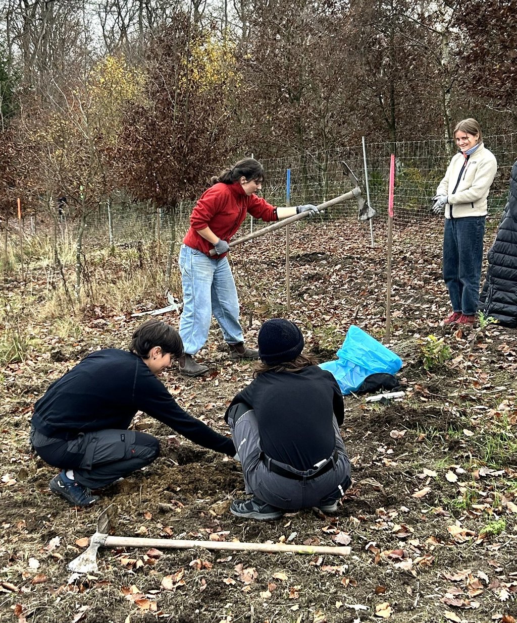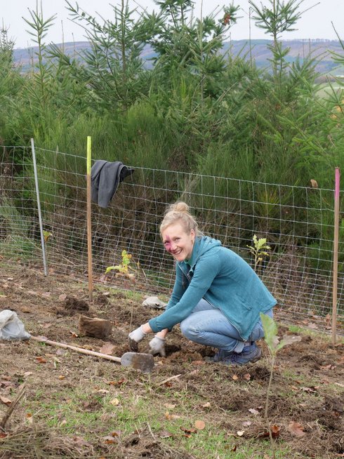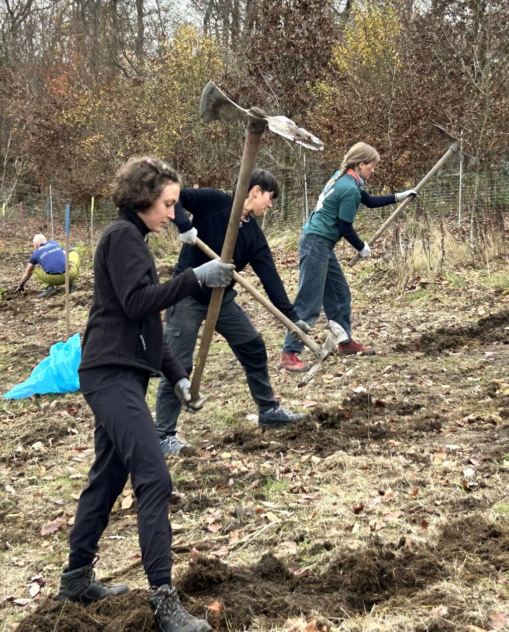 Der erste Aktionstag fand am 14. November 2025 statt. Dann hieß es: Handschuhe an, Wiedehopfhaue in die Hand und raus in den Wald. Gemeinsam mit dem Bergwaldprojekt e. V. pflanzten wir in Neuenrade (Sauerland) 700 junge Traubeneichen. Die Eichen stammen aus Kroatien und kommen gut mit Trockenperioden zurecht. Angesichts der sinkenden Niederschläge und der zunehmenden Waldschäden in Deutschland wurde bewusst diese Art ausgewählt, da sie künftigen Klimabedingungen standhalten kann.