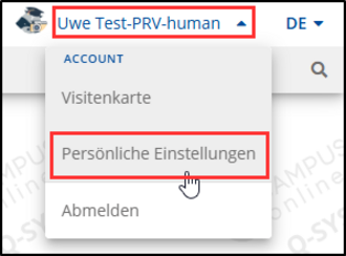 - Rechts oben auf Ihren Namen klicken und Persönliche Einstellungen öffnen.