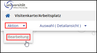 - Auf Aktion und Bearbeitung klicken, um die Visitenkarte zu bearbeiten.
