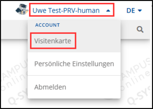 - Rechts oben auf Ihren Namen klicken und Visitenkarte öffnen.